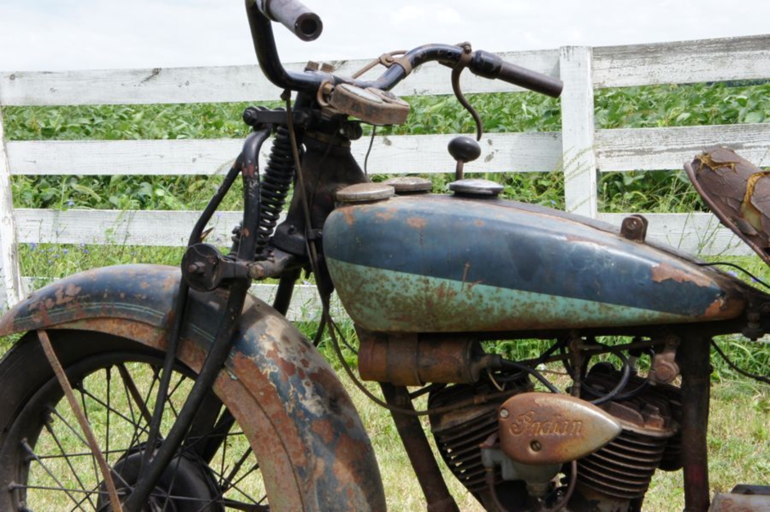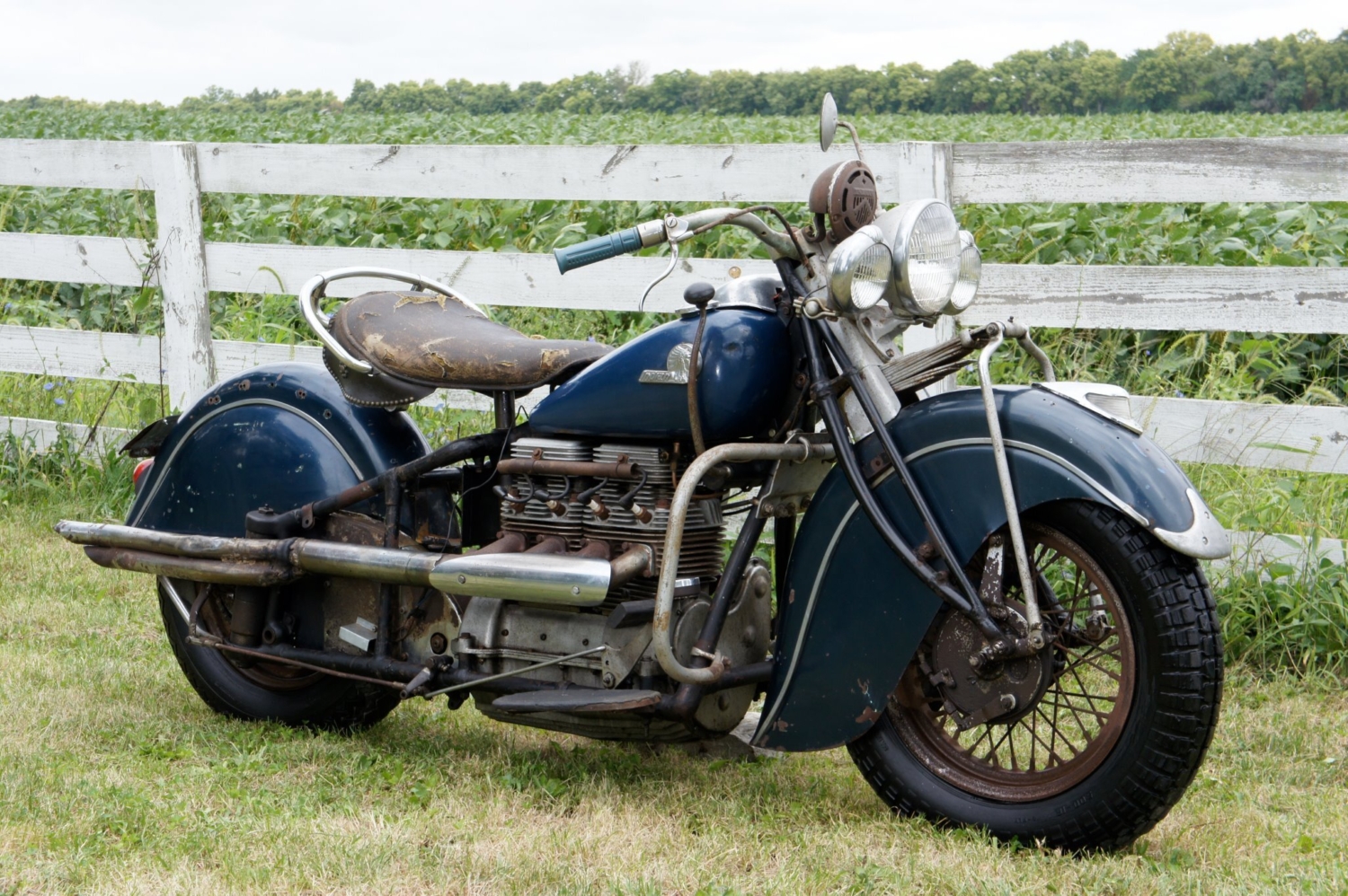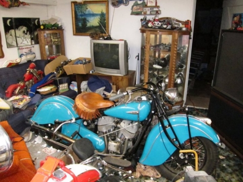 Over the next two months, more than ten auction professionals worked in extreme summer heat uncovering extraordinary discoveries across half a dozen barns. Rare Indian Motorcycle parts were found hidden in floorboards, rafters, rafters, and outdoors. Hemi big-block engines sat quietly in barn corners. The property also included a Victorian home built by Kenesaw Mountain Landis, the first Commissioner of Major League Baseball—though it was no longer habitable, having been filled floor-to-ceiling with automotive parts.